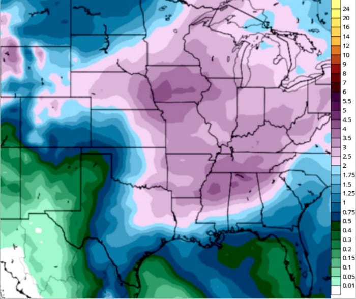 2”-4” of rain with pockets of 3”-6” are possible from NE, eastern KS to OH, southwest to east TX to the TN Valley and even the southeast USA. This would help the drought in the TN Valley. All other locations will see 0.50”-2”.