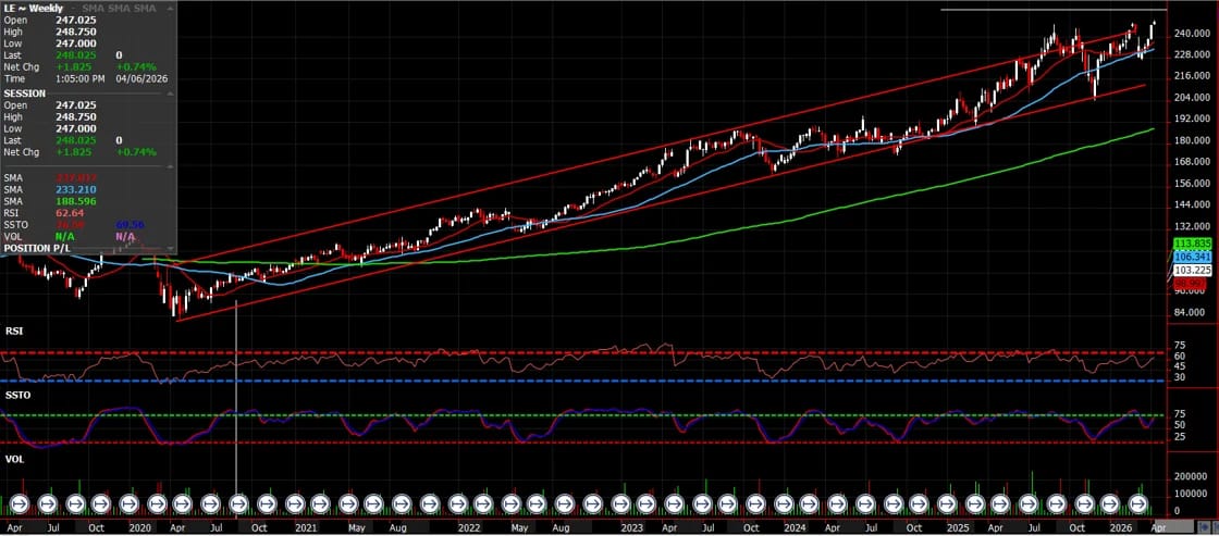 In the words of the famous Festus Haggen, "Onliest thing you get from stradlin' the fence is a sore backside." Well I'm here to tell ya, my backside is getting sore. Being bearish just because of price levels hasn't worked all too well in the last 3 years. That being said, being bearish up here near these $250 and $370 levels has worked multiple times.