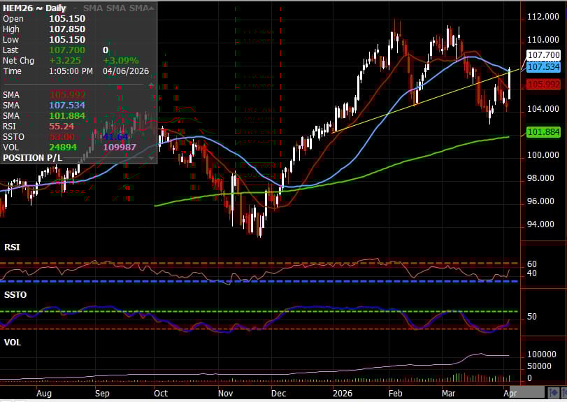 With the strong US jobs report on Friday, I believe we will see equity markets rally early next week and the cattle markets continue to press higher to reach the chart gap and then we will see if we have enough momentum to make a new, all-time high or stall. If fed cattle cash trade is able to make additional highs, we could see futures march on.